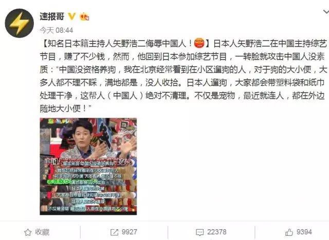 很快,这个帖子被几个微博大号转发,并剑指矢野浩二公开“辱华”。