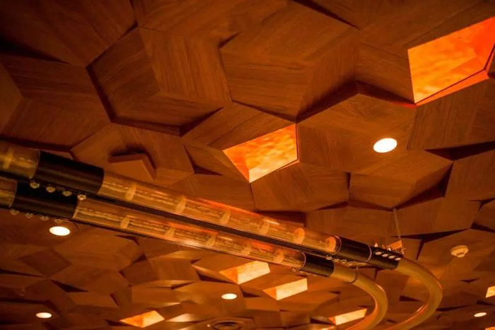 烘焙工坊有三个木质咖啡吧台,均模拟不同咖啡豆的烘焙曲线全手工打磨而成。