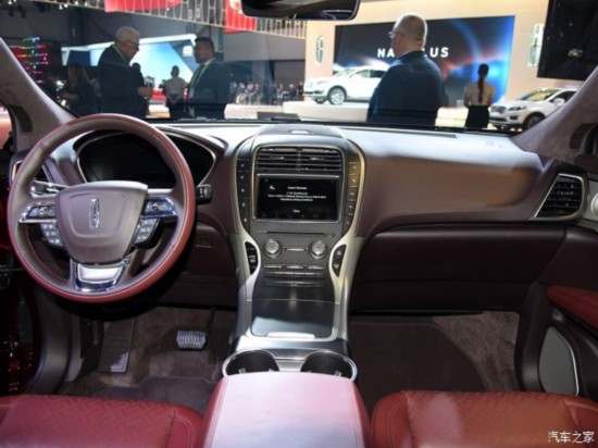 进入车内,Nautilus呈现出的内容还是我们熟悉的MKX,但细节和配置上有所升级。新车依然采用三辐式方向盘,但多功能按键的排列和左右滚轮键的设计不同。方向盘后方,新车还配备有一块12.3英寸的全液晶仪表盘。