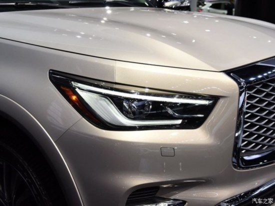 前脸部分,新款英菲尼迪QX80的前大灯组位置更高,造型也更加优美精致,内部白色的LED光带充满科技感,搭配大尺寸镀铬中网,使得新车看上去更显年轻。相比现款车型而言,新车的前脸少了呆板和老气感。