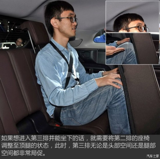 内饰方面,新车最大的变化当属第三排座椅的出现,无论是2+3+2式7座或2+2+2式6座布局,新车的第三排两个座椅都支持电动折叠。从实际体验来看,身高176cm的体验者如果想进入第三排落座,那么就需要将第二排座椅调整至顶腿的状态。因此,这款车的第三排座椅并不太适合正常身材的成年人长时间乘坐。
