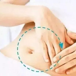 做法:先搓热双手,然后双手重叠,置于腹部,用掌心绕脐按顺时针方向,由小到大转摩36 周,再逆时针方向由大到小绕脐摩36周,有增加胃肠蠕动、理气消滞、增强消化功能和防治胃肠疾病等作用。