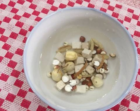 制作方法:莲子肉10克左右,山药要20克,薏米仁要30克,芡实10克左右,加一两把大米熬成粥,早晨吃一碗,晚上还可以再喝一碗。