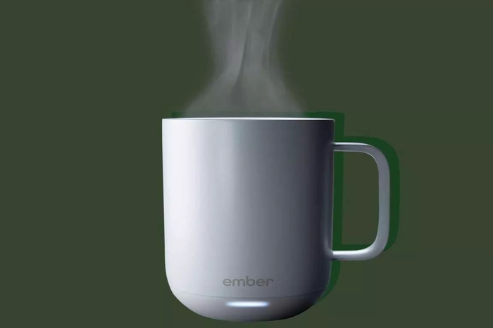 Ember Mug使用了多种材料,不锈钢马克杯加固在白色陶瓷涂层里,通过App控制杯内咖啡或茶的温度,使之持续1个小时保持在最佳的49℃~63℃,避免烫伤之余,又能喝到口感适宜的暖暖的饮料。