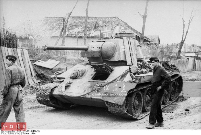另一辆被德军缴获的T-34坦克,摄于1944年。