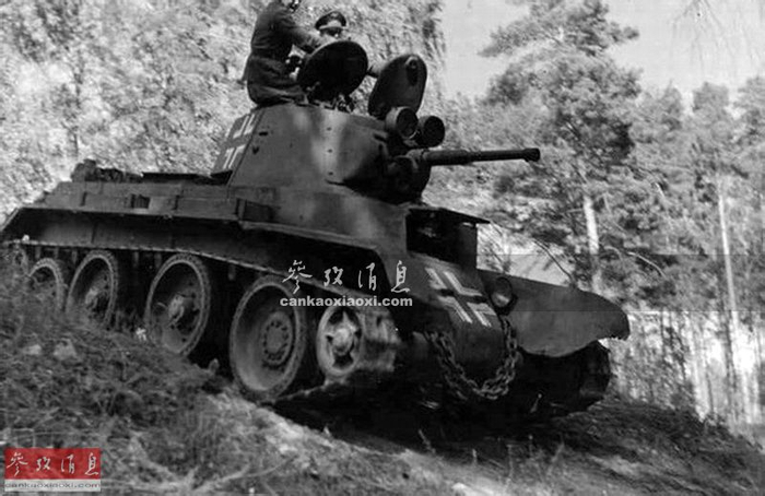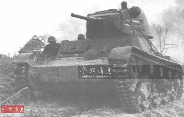 图为德军使用缴获的苏联T26坦克掩护步兵进攻。
