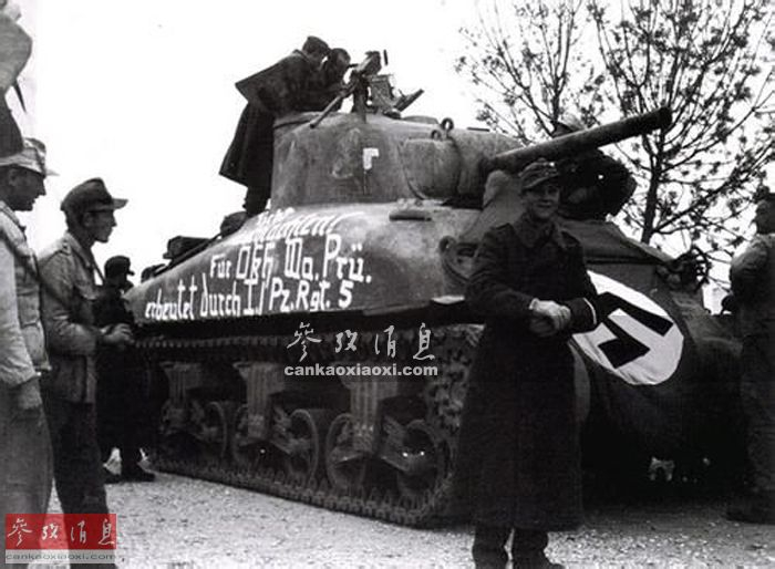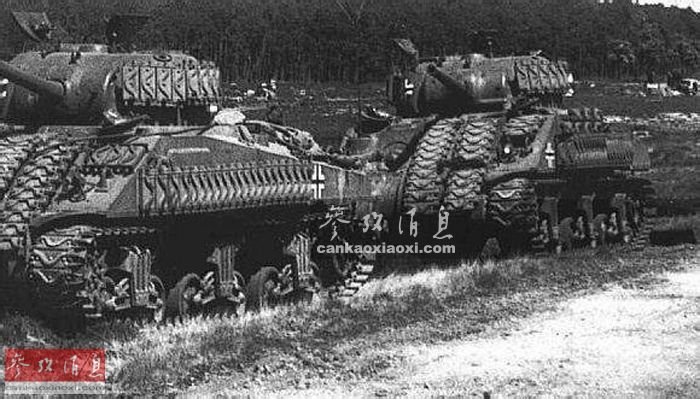 图为战后被英军重新夺回的德军“谢尔曼”和“萤火虫”坦克。