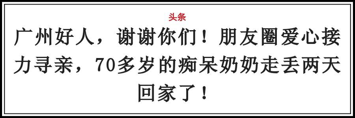 广州好人,谢谢你们!朋友圈爱心接力寻亲,70多岁的痴呆奶奶走丢两天回家了!