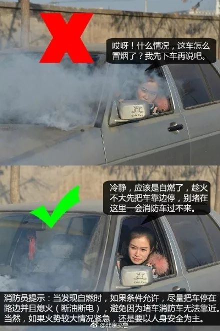 遇到车辆自燃不要慌,怎么做?请看下面这组图~