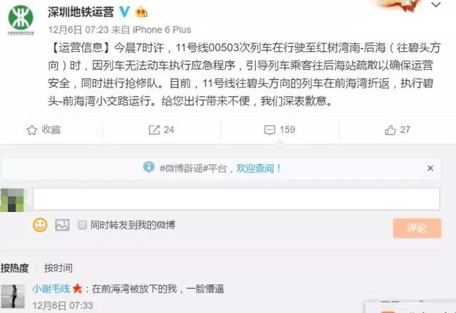 @公子骨:#深圳地铁11号线#一个外地人的亲身经历:在前海湾要求所有乘客下车了
