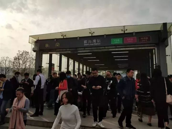 由于正值早高峰时期,大量乘客滞留,11号线福田-前海湾区段启动沿线公交接驳。