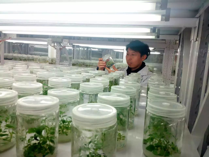 户外北风凛冽,但生长在温室内的植物仍是一片绿意盎然的生机;在组培实验室内,一个个玻璃罐中用营养液培育的幼苗长势良好。这里,就是太原植物园科研团队的“大本营”。