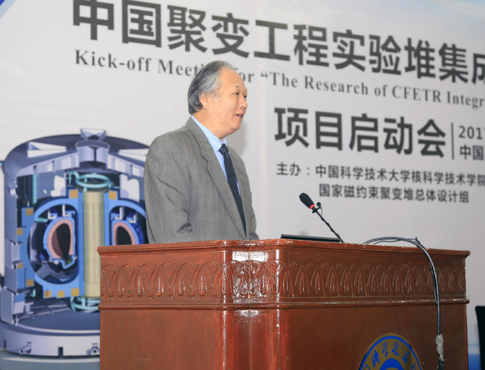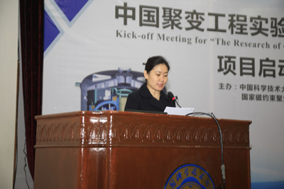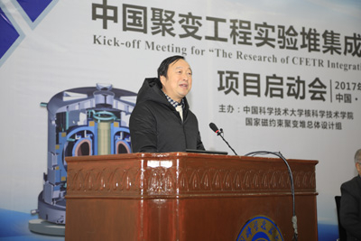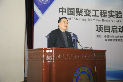 国家科技部原副部长曹健林,科技部ITER中心主任罗德隆、副主任赵静,安徽省科技厅副厅长任鸣、中科院合肥物质科学院党委书记王英俭,我校包信和校长、朱长飞副校长、何多慧院士,以及来自我校及中国核工业集团公司、中科院等离子体物理研究所、核工业西南物理研究院、中国工程物理研究院、中国核电工程有限公司、安徽省、合肥市等科研机构和政府相关部门领导和专家出席启动会。会议由国家磁约束聚变堆总体设计组组长万元熙院士主持。