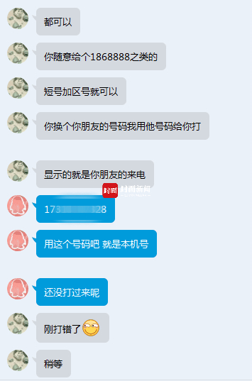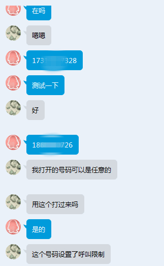 而另一个商家告诉记者,他可以把任意电话改成“18688888888”,拨打电话每分钟0.95元。但聊了10多分钟后,他开始非常警觉起来,不断询问“你是做什么的?”随即,又接连抛出疑问:你的号怎么显示不在常用地区登陆?从你的号码来看是个小号,为什么用小号呢?最后,他甚至要求跟记者进行视频连线。