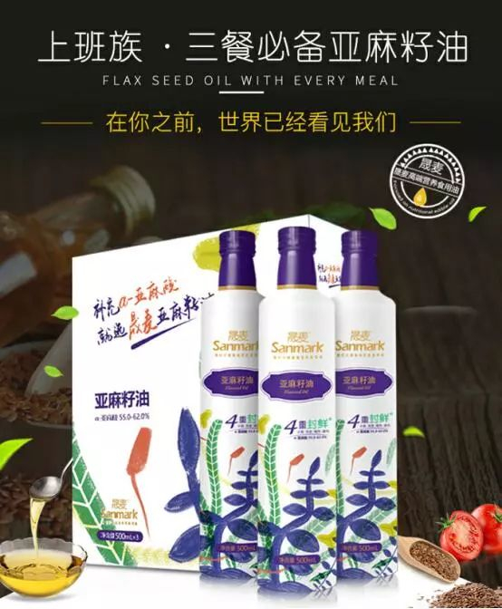 最具影响力的是晟麦亚麻籽油不仅是全国知名品牌的安心食用油,甚至出口欧美、日本、澳大利亚、新西兰等40多个国家,出口销量遥遥领先!亚麻籽油的出口量占全国出口总量的60%以上。