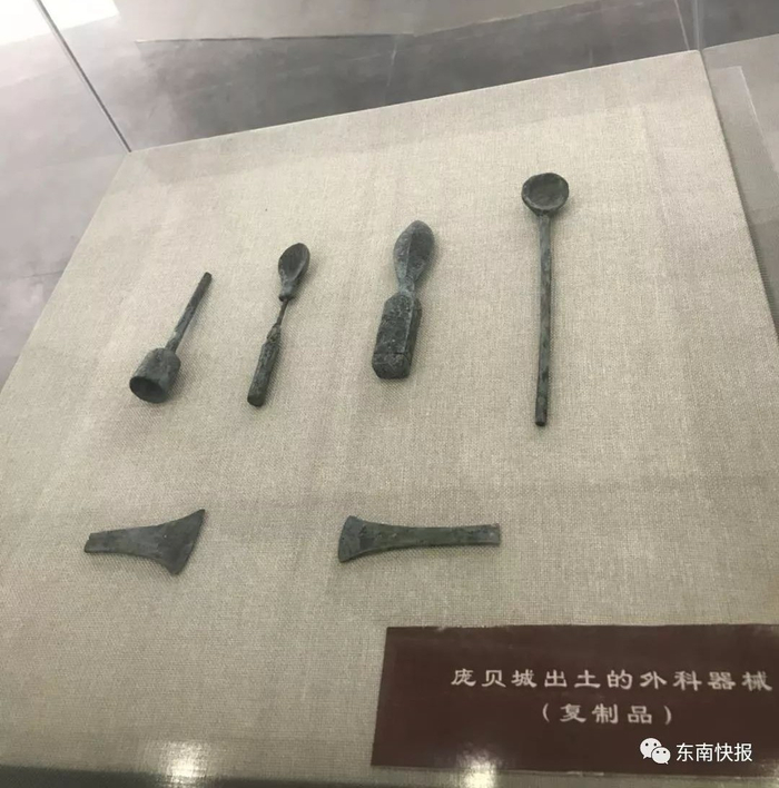 在现场,记者看到,展出的有庞贝城出土的外科器械(复制品)、用于包皮环切术的燧石制工具(复制品)、史前期愈合的骨折股骨(复制品)等。