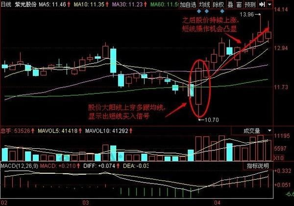 均线的金叉与死叉。短线操作一般要参照短期均线组合5日、10日、20日均线,形成金叉的时候是买进的时机,形成死叉的时候是卖出的时机。