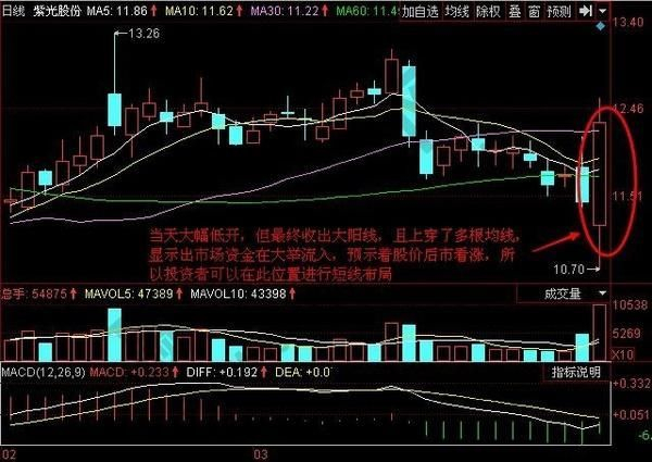 从图中可以看出,该股在椭圆区域形成了一根低开高走的大阳线,且大阳线成功上穿了5日、10日、30日和60日均线,由此可以看出市场资金在大举流入,预示该股后市短线继续看涨,所以投资者可以进行短线买入操作,其后期走势如图2所示。