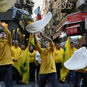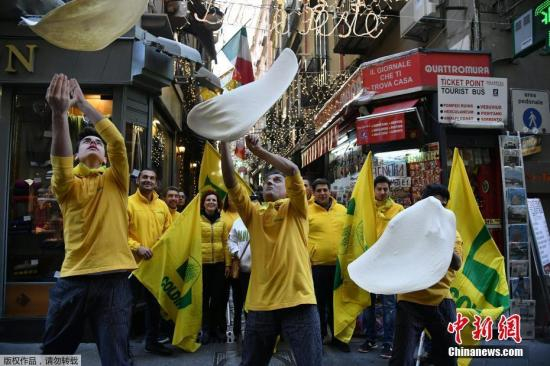 意大利那不勒斯,厨师们在街头“甩饼”庆祝那不勒斯披萨选入非物质文化遗产。