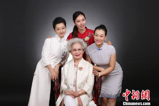 前排为著名京剧表演艺术家刘秀荣,后排从左到右分别是李静、苏昊和白玮琛 钟欣 摄