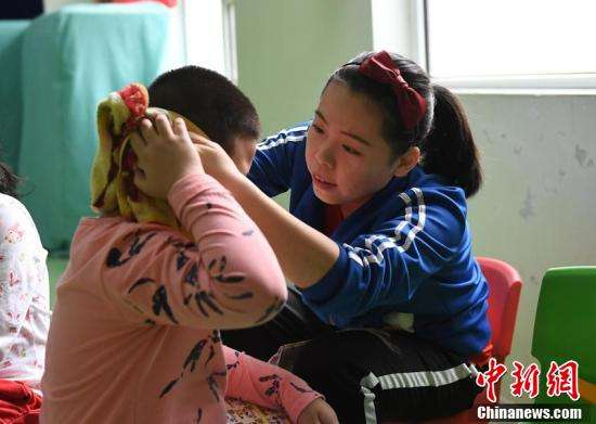魏雪寒所负责的孩子胖胖(化名)会开口叫姐姐,让魏雪寒很开心。魏雪寒说,孩子刚来的时候几乎跟她没有眼神交流,现在每天胖胖都会主动拉她的手,让她感觉很开心。