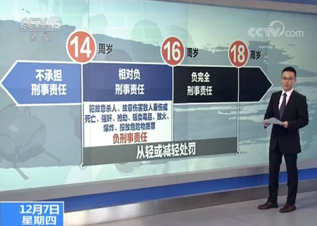 我国《刑法》规定,未满14周岁的不用承担刑事责任。已满14周岁不满16周岁的人,犯故意杀人、故意伤害致人重伤或者死亡、强奸、抢劫、贩卖毒品、放火、爆炸、投放危险物质罪这8项重罪的,负刑事责任。已满16周岁的人犯罪,负完全刑事责任。但是已满14周岁不满18周岁的人犯罪,应当从轻或者减轻处罚。