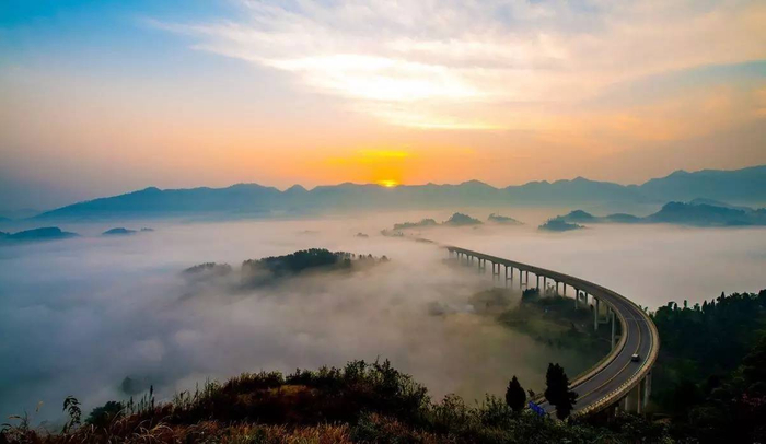 天子窖大桥位于渝北区古路镇,原名周家山大桥。大桥的云海、日出、晚霞、星空都非常壮美,不少摄影发烧友和驴友不远万里只为一睹它浩瀚而美丽的云海,圈内人称“小牛背山”。有了天子窖,还用去牛背山看云海吗?