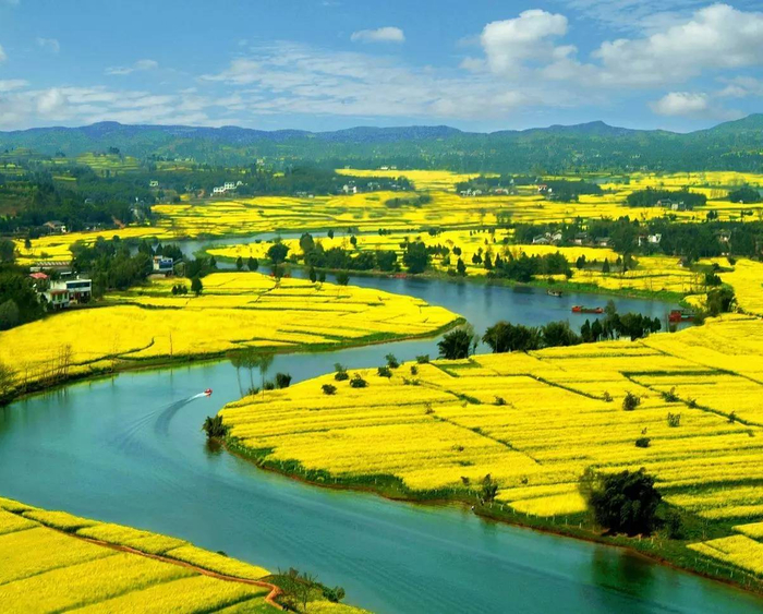 说起油菜花,大家第一印象就是江西婺源,或许还有云南罗平和其他地方。但其实就在重庆潼南区,油菜花也是美得醉人。潼南陈抟故里景区油菜花种植面积达3万余亩,每年举办的菜花节上都能欣赏到 “十里菜花、黄金铺地”的景观。