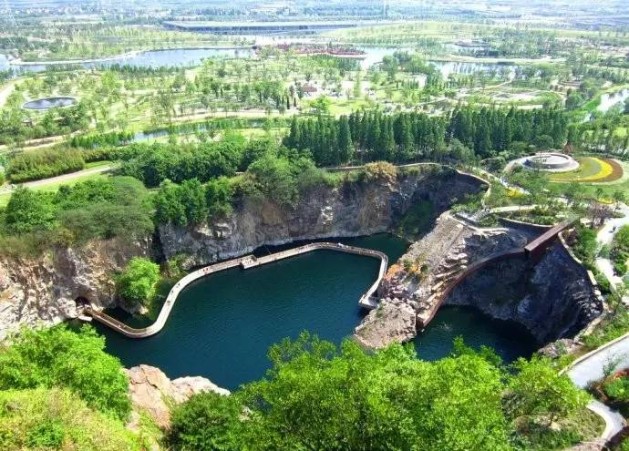 矿山公园位于渝北区石船镇铜锣山矿山,主要看点是由39个采石矿坑形成的湖泊,湖水蔚蓝而清澈,非常震撼!人称“小九寨”。水跟九寨沟一样清,湖泊却更有趣味,重点是还不收门票!