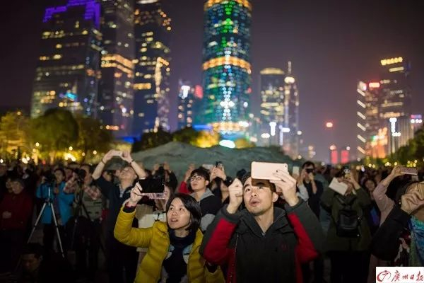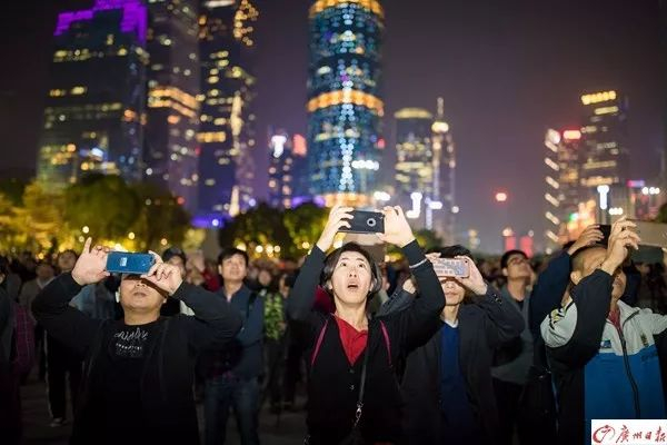 ▲市民一齐欣赏无人机表演。广州日报全媒体记者陈忧子摄