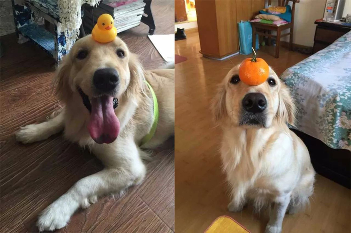 记者从刘女士提供的照片中看到,可乐看起来非常温顺,头顶上放着的玩具、水果等,都是稳稳的。