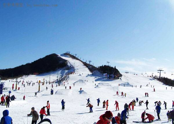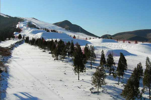这里群山环抱,地理位置得天独厚。隆冬季节,天空蔚蓝,白雪皑皑,雪松矗立,银装素裹。滑雪场采用国际先进的造雪机、滑雪索道,保证每位滑雪者都能在其适应的滑雪 道上安全畅快的感受滑雪的魅力;数十名滑雪教练,对初 学人员采用独特的教授方式进行指导、培训;两千余套进 口滑雪器材、器具、服装,规格齐全,满足每位滑雪爱好 者的要求。同时,还有餐饮、住宿等服务。为崇尚自然、喜爱滑雪的各界人士提供了一处冬季休闲、享受生活、成就事业的崭新场所。