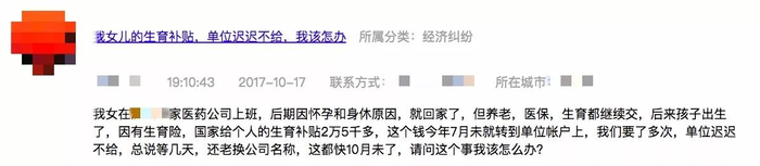 我女儿在沈阳一家医药公司上班。因怀孕和身体原因,就回家了,但养老、医保、生育都继续交,后来孩子出生了,因有生育险,国家给个人的生育补贴2万5千多元。2017年7月末,国家就把钱转到了单位账户上,可我们要了多次,单位却迟迟不给,总说等几天,还老换公司名称,这都快2017年10月未了,请问这个事我该怎么办?