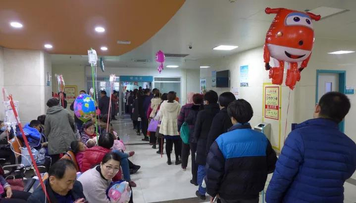 △近日持续降温,儿童扎堆感冒,儿童医院里排队挂号、就诊的人络绎不绝。(资料图/视觉中国)