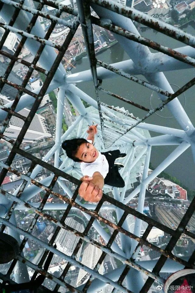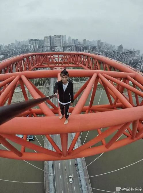 吴咏宁,1994年生,湖南长沙人。相信不少小伙伴,都在朋友圈看到过他的极限小视频,每一个都让人心惊肉跳,就算是看图片也让人觉得害怕……(图片来自于@极限-咏宁 微博)