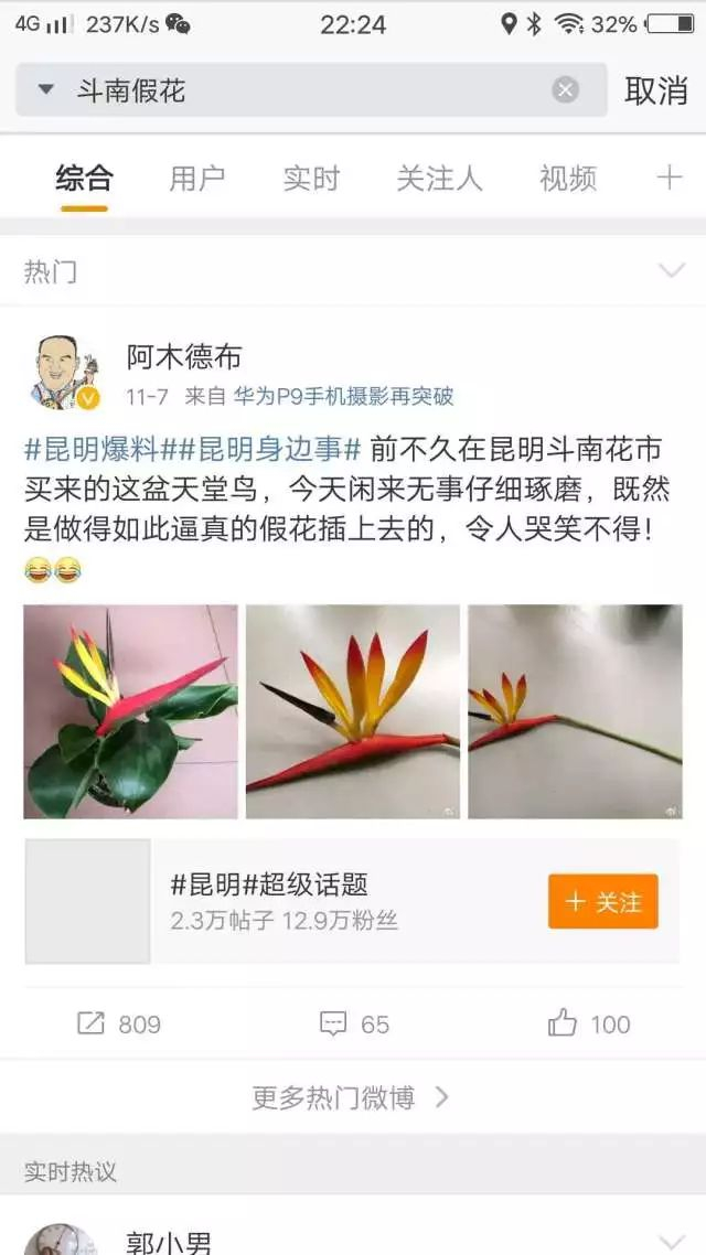 郭小姐觉得又好笑又生气,上网一搜才发现,微博上有很多人都吐槽曾经在斗南买到过这个假花。