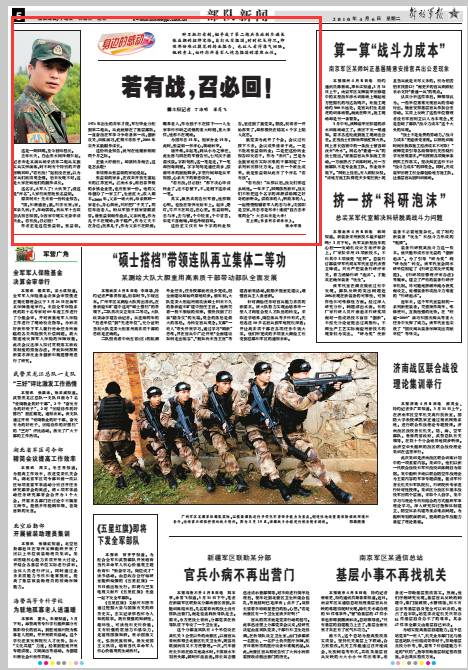 “若有战!”从那以后,战友们都这么喊他。一年多了,旧闻依然新鲜,战友们不断把这个名字的渊源讲给闻之好奇的新听众。讲故事的人,听故事的人,一起慢慢咀嚼着军人的忠与孝:戍国即是卫家,尽忠亦是尽孝!谁说“自古忠孝难两全”?大忠从来是大孝!