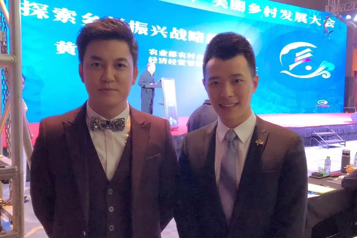 (中国(海南)美丽乡村发展大会现场,南海网刘杰主播与湖南卫视节目主持人李锐的合影)