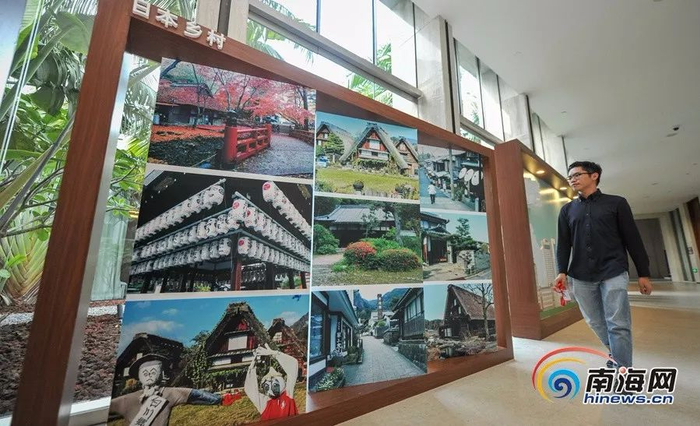 (12月8日,中国(海南)美丽乡村发展大会,陵水清水湾,会议布展等相关筹备工作准备就绪。布好的展览吸引不少人前来观看,合影留念。)