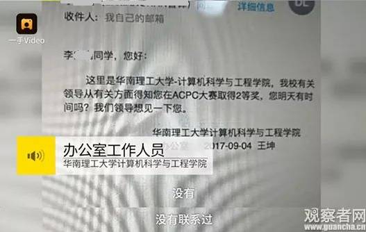 抬头名字打错;正文“我校有关领导从有关方面得知”说辞模棱两可;落款,只有学院、姓名和日期,职务、联系方式都没有。