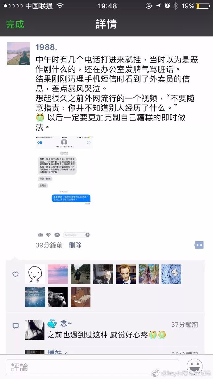 @悠然的丑八怪:之前老公跑滴滴的时候,到了地点打电话,打了挂了,打了挂了,连续打了几次都挂了,我老公就以为是恶作剧,骂人了,结果对方发了短信过来,说自己是聋哑人……我老公自责了很久。