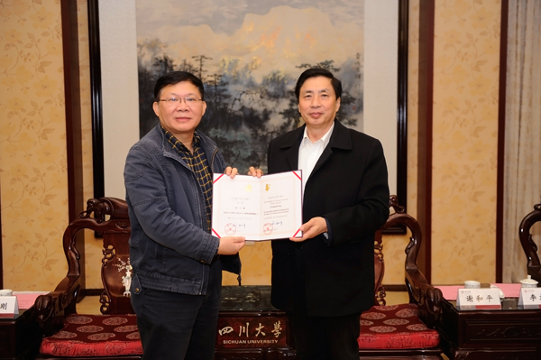 随后,谢和平代表学校向邓小刚颁发了四川大学特聘院士聘书。