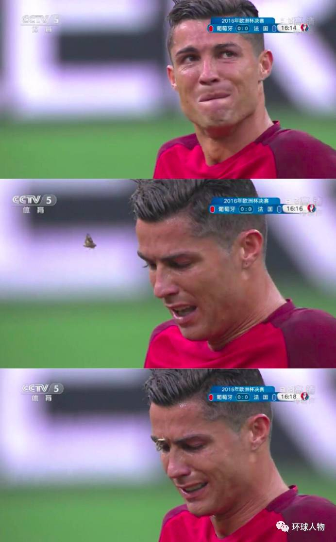 法国vs葡萄牙,上半场第,C罗摔倒了一次,两次,三次。