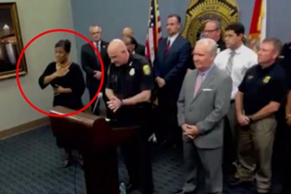 美国佛罗里达州坦帕市(Tampa)警方为一起连续凶杀案召开记者会,会上一名53岁的女性手译员德琳(Derlyn Roberts)在一旁煞有其事地进行手语翻译,没想到这段视频被传到网上后,懂手语的网友却一下发现,德琳根本是在瞎比划!
