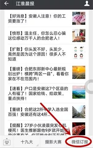 2、进入江淮晨报微信公众号首页,点击底部菜单“微信订报”,进入订报页面。