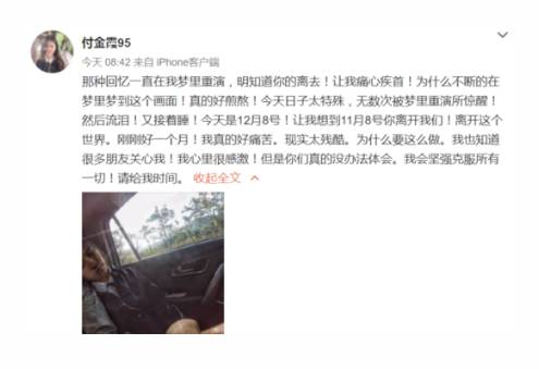 8日,女友又通过个人微博发布消息称:“今天是12月8号!让我想到11月8号你离开我们!离开这个世界。”