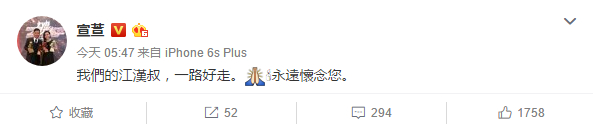 胡一天的菠萝阿a:从小看他的戏,爸爸妈妈也喜欢看,一路走好
