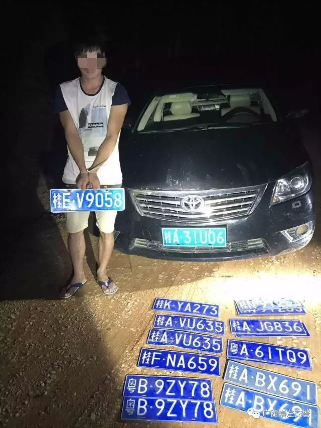 9月18日,崇左市凭祥交警在边贸区开展交通违法行为整治行动时,查获8辆套牌车,车上最多的藏有6块假牌,查获假牌数量之多成历史之最。