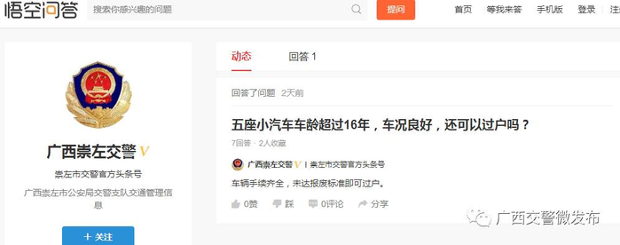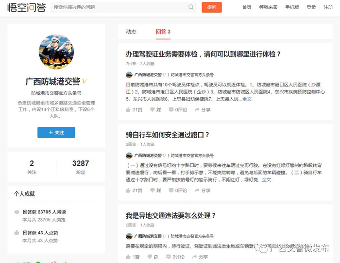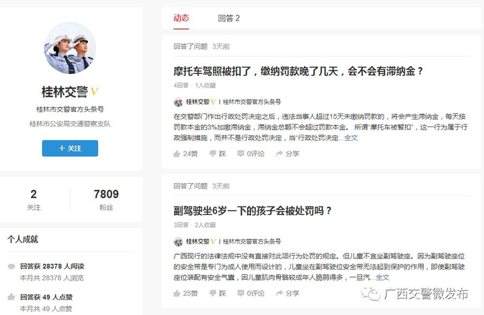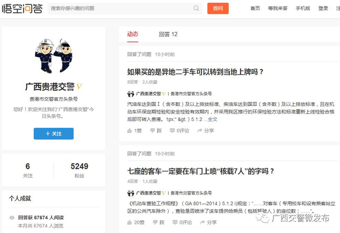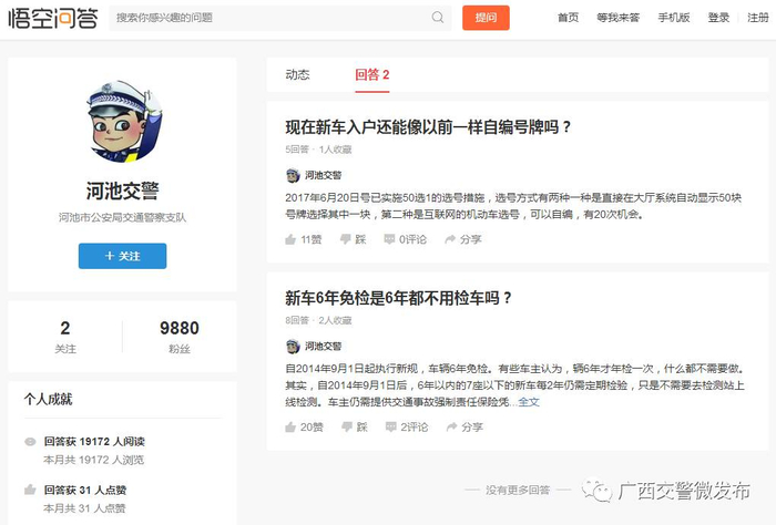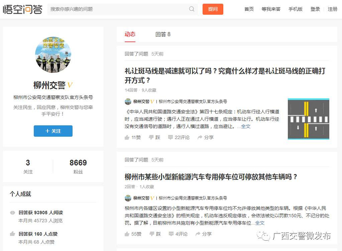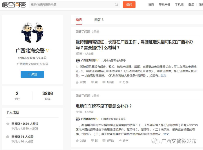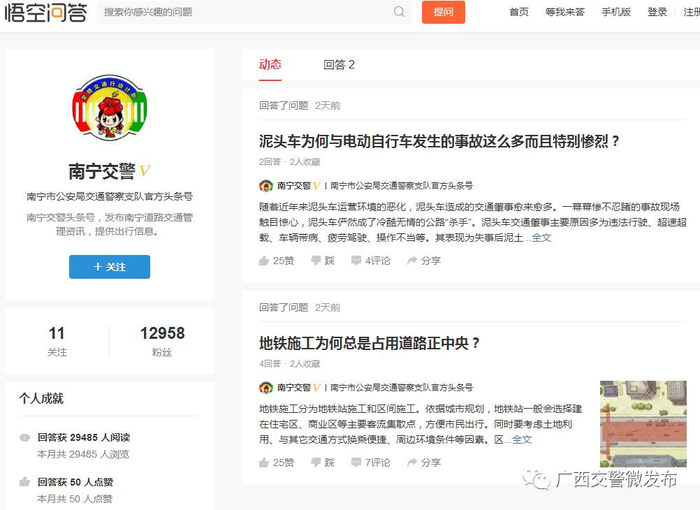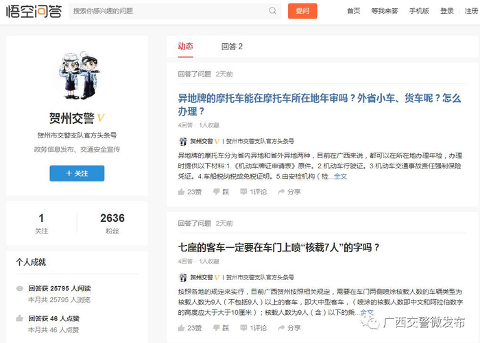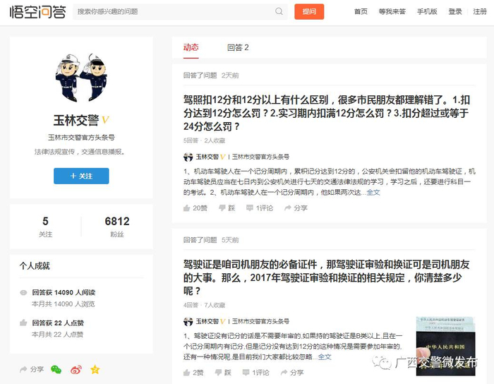 广西14个设区市的交警已入驻了「悟空问答」平台