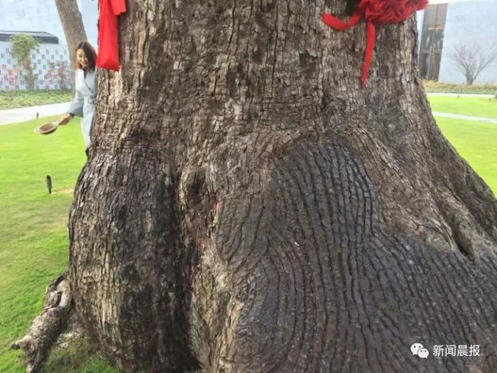 古胤置业的景观负责人则介绍,这棵是酒店最大的香樟,但其究竟多少年难以确切判断,1000年有点夸张。据其介绍,酒店的香樟以胸径在45厘米左右的居多,最细的胸径在30-33厘米之间,少量粗的胸径在50-80厘米左右。